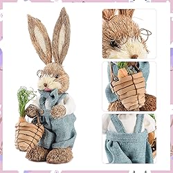 Festive Easter Bunny Statues: Accentuate your space with our intricately designed bunny rabbit statues that will elevate your home's aesthetics and add a festive atmosphere to your springtime decor. Versatile Decoration Pieces: Whether it's patios, gardens, or indoors, these adorable bunny figurines fit perfectly. Ideal for spring or Easter decor, Easter egg hunts, and table decorations, they also make an excellent gift for birthdays and holidays. Durable and Standalone: Crafted from premium quality sisal and burlap materials, these rabbit figurines are built to last and can stand sturdily on their own for your convenience. Optimally Sized: Measuring approximately 14 inches, these charming Easter bunny statues and figurines are of the perfect size to adorn your dining table, living room, or entryway without being overpowering. Package Inclusion: Each pack comes with 2 delightful Easter bunny figurines, offering you value while bringing a fresh, playful touch to your decorations.
