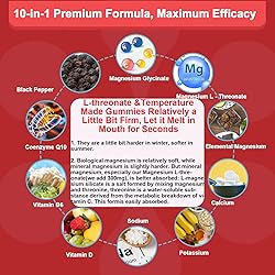 💖900mg Magnesium Comple💖x: Our gummies provide a potent blend of 600mg Magnesium Glycinate and 300mg Magnesium L-Threonate. This unique combination supports relaxation, muscle health, and overall well-being. 💖65 Gummie💖s: Unlike most brands offering 60 gummies, we give you 65 gummies per bottle. That’s 5 extra gummies for sharing with your friend! Saves your money and give you a sufficient 1 month supply. 💖Sugar-Free and Gluten-Free💖: Our magnesium complex is sugar-free and gluten-free, making it suitable for individuals with dietary restrictions or sensitivities. It is also vegan-friendly, with no artificial colors, flavors, or preservatives. 💖10-in-1 Formula💖: Our gummies aren’t just about magnesium. They also contain essential nutrients like Vitamin D, B6, and Coenzyme Q10. 💖Lab-Tested Premium Quality💖: We take quality seriously. These gummies are rigorously tested to ensure purity, potency, and safety. Trust in a premium product backed by science.
