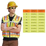 ✅ [Customized] One high-visibility reflective safety vest can be customized, with your own design image or company logo imprint. This safety vest will ensure that you and your company are easily noticed and recognized. Surprise: If you purchase 10 or more high-visibility personalized printed safety vests at one time, we will give priority service. ✅【High Visibility】HIGH VISIBILITY APPAREL: Unisex safety Vest with high visibility reflective tapes. Its Four 2-inches wide Hi-Vis retro-reflective tapes outlined by the radiant and bright yellow orange extended edge trim to maximize your visibility in a daylight and low light working environment. ✅【MATERIALS】SURVEYOR WORK VEST MATERIALS: Made with heavyweight polycotton fabric in front, a heavy-duty zipper closure, and reinforcement edge binding, the Unisex surveyor safety vest is built to last. The Reflective Tape is applied with heat transfer to ensure that stitching won't come loose. Rugged polyester cotton material supports extra weight carried in cargo pockets. Customers who prefer a looser fit should order 1-2 sizes larger. Please check the size chart before placing an order! ✅【pockets】Zipper front closure and 15 pockets were reinforced with tight sewing, with two durable mic tabs on the shoulder to hold your radio/walkies. grey webbing, sturdy, wear resistant. There is a phone pocket and 2 large pockets inside the vest.A pouch for flashlight/pen/pencil. A small but expandable hook and loop flap closure pocket. And 2 Large expandable snap-button utility pockets . A bright HI VIS safety vest with pockets.Specially reinforced zippers and pockets ✅APPLICATIONS: Great for municipal workers, contractors, superintendents, engineers, surveyors, foresters and conservation workers, airport ground crews, fulfillment/warehouse workers, public safety marshal, crossing guard, delivery crews, traffic and parking attendants, securities, public transportation, and truck drivers, survey crews, and volunteers. It is also suitable for recreational activities such as cycling, wilderness hiking, park walking, jogging, and motorcycling.