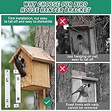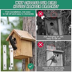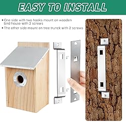 EASILY REMOVE AND HOOK: Our bird house hanger allows for effortless removal and hanging of birdhouses, facilitating prompt cleaning and inspecting, providing a clean and comfortable living environment for our beloved feathered friends. DURABLE AND STABLE BRACKET: Our birdhouse T post brackets are made from robust galvanized iron, which is strong and firm, hard to break or deform, and rust-resistant that designed for outdoor use, ensuring long-lasting, stability and reliable support to your birdhouse. EASY TO INSTALL: The installation process is a breeze. Just attach one side with two holes to your desired surface using screws, and affix the side with hooks to the back of the birdhouse or nesting boxes, then you can easily hook your bird house. THOUGHTFUL SET: You will receive 6 sets of birdhouse hanger bracket, each set comes with 4 mounting screws, each of them measures about 6×1inch, sufficient quantities and suitable size to meet your daily needs and offer replacements when necessary. VERSARILE APPLICATION: Our bird feeder hanger is suitable for wooden feeders, nesting boxes, and birdhouses, allows you put them anywhere you want, such as effortlessly be hung on fences, posts, or trees, creating a perfect spot for birds to call their new home.