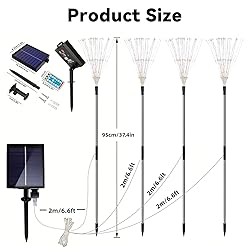 120 LED Solar Lights for Outside: Our upgraded creative solar garden fireworks lights have 120 LED beads, This product is a connected string of lights, not individual units. more beautiful and brighter than the other fireworks lights with 105 beads. You can DIY any shape as you like to creat a beautiful and colorful light spots lifelike fireworks, lighting up your beautiful garden, yard, sidewalk, etc. Solar-Powered and Waterproof: These outdoor solar garden lights are powered by solar energys. They charge during the day and automatically illuminate at night, providing long-lasting and energy-efficient lighting. Designed to withstand all weather conditions, these outdoor decorations lights are waterproof and suitable for year-round outdoor use. Impressive Garden Decor with DIY: These solar lights outdoor for decorations effortlessly enhance your garden decor, these solar lights are suitable for pathways, gardens, front porches, and backyard decor, ideal for various outdoor activities. With flexible copper wire, you can DIY any shape, such as fireworks, flowers, heart, spiral, spherical. These solar string lights will brings you unlimited surprises. Easy to Install and Use: These pathway decoration lights are easy to install with no wiring required. Super easy to use because no cables or plugs are needed, just plant the solar lights in your garden, and turn the switch on to enjoy the most beautiful solar decorative lights in the world. Purchasing 100% Service: We check every package before we send the neon signs out, to make sure no problem for each solar garden lights package. If you have any problem for night light or you need any help, please contact us with no hesitation , we will provide you help within 24 hours. Connected Solar Light String: This is a pre-connected solar light string; each order contains one continuous set (not separate lights).