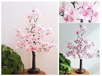 - Elevate spring vibes with the OOLALOO Prelit Cherry Blossom Tree Lamp in a delightful 18-inch pink edition. Great for welcoming the New Year with a burst of seasonal charm. Featuring 8 dynamic lighting modes, this prelit tree lamp adds a touch of warmth to any corner or cozy space. Effortlessly set the mood with its 6-hour automatic timer, making it a breeze to turn on and off. Powered by 3 AA batteries or a convenient USB cable, this portable and flexible tabletop bonsai tree is ready to enhance any room's decor. Note that when using both batteries and the USB cord, the USB won't charge the batteries. Keep in mind that this pink beauty isn't waterproof and is designed exclusively for indoor use—so no outdoor rain exposure, please.