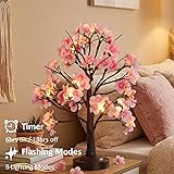 ooLALoo 18 Inch Cherry Blossom Tree with Timer, Warm White Tabletop Spring Bonsai Tree USB/Battery Operated, Light up Artificial Tree Decorations for Christmas Indoor Mantel Home Wedding Easter Gift