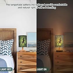 Size: 13 cm (diameter of the lampshade) x 24.7 cm / 5.12 inches (diameter of the lampshade) x 9.7 inches; Printing instructions: lampshade printing; Material: linen fabric (lampshade) + LED light (no light bulb) with wooden base + USB button line (non-demolition); Feature: the table lamp includes a lampshade, no need to install a light bulb, the LED light is integrated with the stable wooden base, a short-end button switch, which is convenient for you to turn on or turn off the lights, USB interface, plug and use the desk lamp; Non-flashing warm lights protect your children and family's eyes; Applicable scene: suitable for bedrooms, guest rooms, living rooms, study, boy's and girls' rooms, offices, desks, etc; Instructions for usage: ①The lamp holder and the lampshade for reverse packaging, you need to separate them first; ②Press down the center buckle to separate the lamp seat and the lampshade; ③Press the lampshade center buckle into the ring, then the install is complete; ④Control USB to the power supply and control the button switch.