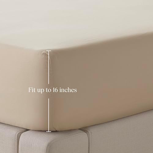 Double Stitch Cotton Tencel Fitted Sheet - California King Fitted Sheets Deep Pocket, Soft Hotel Bedding, Cooling & Breathable for Hot Sleepers, Up to 16 inches, Sandstone