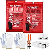 - Features: Each set includes 2 fire blankets, 2 stainless steel hooks, 2 pairs of gloves, and 2 emergency whistles, specially crafted to furnish security and accessibility in moments of need. The fire blankets, made from tightly woven fiberglass posts, are sized 39.3'' x 39.3'', adequate to cover and extinguish small fires. Operation of these fire retardant blankets is simple and intuitive. Just pull them out from the package via the pull strap and drape over the fire till it's extinguished. An aspect of our fiberglass fire blankets is their reusability. After use, if they are not damaged, you can clean and fold them back for future use if needed. Specifications: Material: Fire blanket: woven fiberglass posts Hook: stainless steel Color: as pictures shown Size: Fire blanket: approx. 39.3 x 39.3 inches Hook: approx. 1.77 x 1.77 x 1.18 inches/ 4.5 x 4.5 x 3 cm Glove: approx. 8.66 x 4.72 x 0.2 inches/ 22 x 12 x 0.5 cm Emergency whistles: approx. 0.79 x 19.69 inches/ 2 x 50 cm Package includes: 2 x Fire blankets 2 x Hooks 2 Pairs gloves 2 x Emergency whistles Notes: Manual measurement, please allow slight errors on size. The color may exist a slight difference due to different screen displays.