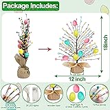 - 【Product Specifications】 Dimensions: 19 inch * 12 inch (H*W) Base: 3.5 * 2 inch (W* H) 1.8 inch Easter Egg : 4 (2 yellow, 1 blue, 1 pink) 1.5 inch Easter Egg : 4 (1 yellow, 1 blue, 2 pink) Berry: 72 (24 yellow, 24 blue, 24 pink) Dots: 96 (48 pink, 24 yellow, 24 blue) String Light Length: 6.5Ft Number of String Lights: 20 lights Light Color: Warm white Timer Function: Automatically turns on for 6 hours and off for 18 hours String Light Length: 6.5Ft/20 lights Power Supply: 2AA batteries (not included) Other Scenarios: Suitable for indoor or outdoor use, Easter decorations, spring decorations, such as tabletops, living rooms, bedrooms, classrooms, offices, parties, weddings, etc. Can also be given as a gift to family and friends. 【Package Includes】 2 * Easter Egg Tabletop Trees 2 * Warm White String Lights