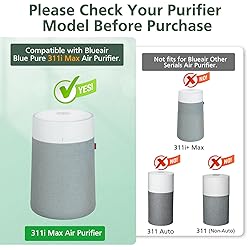 - Compatibility: Compatible with Blueair Blue Pure 311i Max Air Purifiers Item: Blue Pure 311i max filter Compare to Part No.: Blue Pure F3MAX 3-in-1 HEPA Filter 1)Pre-filter (Not Included): Attach hair, lint, pet fur and other large particles. 2)HEPA Filter: Attach pollen, pet dander, dust and other particles as small as 0.3 microns. 3)High-Efficiency Activated Carbon Filter: Absorbs household odors from pets, cook, smoke. Replace Regularly: It’s better to replace your 311i max filter replacement for Blueair Blue Pure every 6-9 months, to keep at peak performance What’s in the Box: 311i max replacement filter x 2 Pack