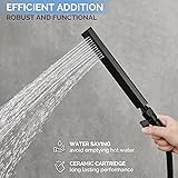 SOLID & SUPERIOR CONSTRUCTION: made of heavy brass, finished by matte black coating, strict and exquisite workmanship for long term durability and reliability, withstands daily rust and tarnishing WATER SAVER CONTROL VALVE: efficient addition to a high flow shower, helps reduce water pressure, no more wasting hot water while getting soaped up EASY WATER FLOW ADJUSTMENT: shower flow restrictor allows for controlling water volume or completely shutting off water flow while showering. ADJUSTABLE SHOWER HEAD: swivel ball joint allows 360 degree of angle adjustment, you could easily adjust the shower direction to your liking, the lever on the side helps change to a softer flow SIMPLE & EFFICIENT SOLUTION: high flow shower spray head and adjustable water pressure regulator are ideal complement for showering, which provide a pleasant and relaxing shower time