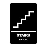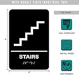 Factory Crafts | Self Stick ADA Unisex Bathroom/Restroom Sign Men and Women with double sided tape | Handicap Symbol | ADA compliant with Braille | Black 9"x6" | Made in USA (Stairs)