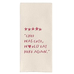 DOTAIN Funny Kitchen Towel,Chef Would Eat Here Again Waffle Weave Dish Towel Cloth Decor,Chef Gifts(Pink 24x16inch)