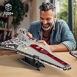 【Impressive size】-The size of the replica version is that the Republic attack cruiser Venator class is 45 centimeters long, 23 centimeters wide, and 18.5 centimeters high. The attacking cruiser itself is very sturdy and visually attractive. This kit contains many realistic details and features, especially the implementation of some small details. 【High-quality MOC building set】- This 1320-piece model is meticulously designed using MOC technology, Made with durable and sturdy materials, this model features high-quality ABS plastic bricks that are resistant to wear and tear. Every piece is made to last, ensuring long-lasting enjoyment. Immerse yourself in the world of Star Ship Starfighter Space Ship Model by Mould King. 【Follow the steps】-The toy set contains many building blocks, all components are sorted and carefully packaged so that they are not lost. Installation instructions are included so you can start with each step. Compatible with most similar building blocks on the market, with strong scalability. The best home-learning game for everyone. It will be a great parent-child time to play with the kids. 【Top Gift Choice】- If you are looking for a cool gift for your child's birthday/Children's Day/Christmas/New Year/Hanukkah/Easter/summer camp/school phone. Or perhaps you have searched for a building block challenge, which is the best choice for your child or friend.Our building blocks not only provide hours of entertainment, but also facilitate learning in areas such as math, science, and engineering, making them a great tool for both playtime and education. 【Satisfaction Guaranteed】: We take pride in providing excellent customer service and support. If you encounter any issues or have questions regarding our product, our dedicated team is here to assist you. Enjoy the satisfaction of building a high-quality bottle ship model that will impress both adults and children alike.