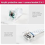 Raspberry Pi camera module case and stand 2-in-1 The camera housing is compatible with multiple CSI camera modules of Raspberry Pi and Jetson Nano Transparent acrylic material protects the camera while allowing clear observation of the camera module Quick installation, the package does not have instructions, please check the installation steps of the shell bracket on the details page Packing list contains 2pcs camera housing bracket(Camera module not included)