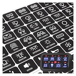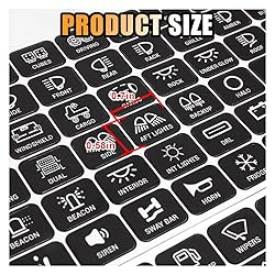 【What You Get】:Includes 1 set of 120 pcs car switch panel stickers, single sticker size is about 0.7×0.58 inches, covering most types of stickers, compact and lightweight, easy to carry and store, meet your daily replacement needs. Icon types include light bars, fog lights, driving lights, strobe lights, etc. 【High Quality Material】:The car switch label kit is made of high quality PVC and PC material, flame retardant and environmentally friendly, neatly aligned, waterproof and dustproof, climate change resistant, protect your switch buttons from sunlight damage and fading. 【Applications】:The car dashboard button decal is suitable for 12V battery vehicles, boats, such as cars, motorbikes, yachts, ships, trucks, caravans. For instrument boards, circuit boards, rocker switches, GPS, horn, etc. Clear pattern and text help you find and manipulate easily. 【Easy to Install】:The car switch panel decal comes with adhesive backing, just peel off the protective film and stick it in the right place, the adhesive on the back ensures that the decal stays in place for a long time and won't peel or come off. Note: Clean the button surface before installation and make sure it is dry before use. 【Compatibility】:The car switch label decal is suitable for protecting or replacing old switch panel decal, compatible with AR-800, BA80, GA80, GB80, BB80, BC60, GC60 and other models of switch panels. Note: Before purchasing, please check the product size and model number to make sure it fits.