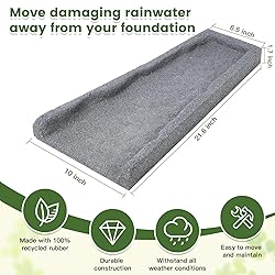 BEST SOLUTION: This splash block diverts water away from your downspout to prevent soil erosion, avoiding mud splatters, and keeps your foundation safe from water runoff. SUPERIOR CONSTRUCTION: Made from recycled tire rubber, the downspout splash block is designed to withstand extreme weather conditions without cracking or decomposing. UNIQUE DESIGN: Unique slope design ensures water is directed and spread away from your foundations, while minimizing the standing water on the down spout drain trays. SIMPLE INSTALLATION: Just place the gutter downspout splash block under the rain water pipes and let the rain water drift away. No stakes or anchoring needed. EASY TO USE: Durable but lightweight, the rain gutter downspout splash block is easy to place under any downspout and makes a nice addition to your home exteriors.
