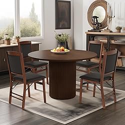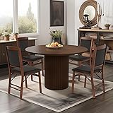 SIMTONAL Modern Dining Table Pedestal Dining Room Table Walnut for Kitchen, 47''L x 47''W x 29.9''H(Only Table)