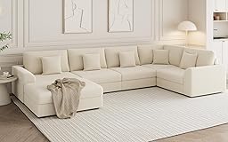 【COMFORTABLE SITTING FEEL & FIVE HOLDING PILLOWS】Bigger and thicker seat cushion ensures good support and soft sitting feeling. Our u shape corduroy sectional also add five pillows to make your experience more comfortable and complete. 【FREEDOM OF COMBINATION & SLEEPING SOFA】Our versatile modular combination U-shaped sofa can not only be flexibly combined to meet your space needs, but can also be turned into a sofa bed to provide additional sleeping space. 【SOLID WOOD FRAME & DURABLE】Our oversized convertible sofa bed is made of high-quality solid wood frame, durable and can easily accommodate family members' sitting and sleeping needs. Sturdy sofa legs provide extra strength. The modular sofa is crafted with meticulous attention to detail to ensure lasting enjoyment for years to come! 【REMOVABLE SOFA COVERS & EASY TO CLEAN】Enjoy life to the fullest without worrying about a dirty sofa! Our u shape corduroy sectional fabric is very thick, hard-wearing and easy to clean, ensuring that it remains beautiful for long periods of use. 【REMOVABLE SOFA COVERS & EASY TO CLEAN】Enjoy life to the fullest without worrying about a dirty sofa! Our u shape corduroy sectional fabric is very thick, hard-wearing and easy to clean, ensuring that it remains beautiful for long periods of use.
