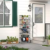PUSDON Stackable Metal Storage Carts, Dual Use Shelf for Kitchen Fruit Vegetable Baskets with Wheels, Storage Rack for Living Room, Home & Office, Standard Black 6 Tiers