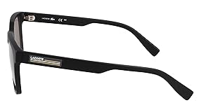 A brand-new design that establishes the Lacoste eyewear identity in the Male world Large size and global fit with RXable frame The geometric temples are decorated with a rubber insert hosting the colored stripes The modified rectangular shape is enriched by the white extended raised logo on the temples Its bio inj-g820 material provides resistance and flexibility