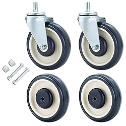 - Features: These wheels are designed to be used as replacement wheels for shopping carts. Our shopping cart casters fits most shopping and grocery carts,seville classic metal shelving,buggy etc. This shopping cart replacement wheels are with a polyurethane tread which protects floors while providing a smooth and quiet roll. Coming with 5/16 axle bolts and lock-nuts, it's easy to replace the wheels on the shopping cart. Specifications: Material:Polyurethane Color:Grey Wheel Diameter: 5" Wheel Width:1.2" Bore size: 5/16" Capacity : 250 lb Each Wheel Package Included: 2 x 5" casters wheels, 2 x 5" standard wheels, 2 x locking nuts (pre-installed) 2 x locking nuts (not installed), 2 x 5/16" bolts x 2 & 1/4" (pre-installed), 2 x 5/16" bolts x 2 & 1/4" (not installed).