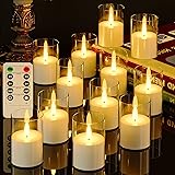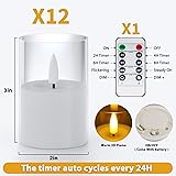 VIODAIM 12Pack Flickering Flameless LED Candles with Remote & Timer, Battery Powered - Small Pillar & Votive, Clear (2"X3")