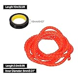 - What is this? This spiral tube wrap is a flexible cable management sleeve that helps keep cords neat, organized, and easily accessible. It can be used in various home, office, and automotive wiring applications. According to different inner diameters, it can be applied to network cables, power cables, hoses, PVC tubes, rubber pipes, gas pipes and air-conditioning pipes. What will I get? The spiral wire wrap, we provide here, is in the size of: Length: 3.0m/9.8ft Inner Diameter: 8mm/0.31 inch Outer Diameter: 10mm/0.39 inch Tape Size: 10m x 16mm/32.8ft x 0.63 inch (L*W) Material: PP Color: Red In the package of: 1 pcs x Cable Organizer, 1 roll x Tape Are there any advantages of the product? Using PP material, this spiral tube is flexible and reusable. It is wear-resistant, high and low temperature resistant, oil resistant, and has a long service life. The cable management sleeve adopts a spiral design, which can wrap the wires from the outside to protect and insulate at the same time. How to use it? Steps of installation: 1. Measure the outer diameter of your wire or tube; 2. Choose a spiral tubing with the appropriate inner diameter; 3. Cut the sleeve to the length you need; 4. Slide the wire or tube over the spiral cable wrap. What should I notice? Please choose spiral sleeves with different inner diameters according to different uses.