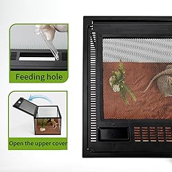 【360°Full View Reptile Glass Tank】:The size of this reptile glass tank is 16"x11"x9" and it is made of all tempered ultra-white glass, so that you can observe your pets's the body condition and activities from every angle. 【10 Gallon Reptile Terrarium】: This reptile terrarium has a high quality tempered thick glass base,so it is more stronger and safer. The waterproof base is designed so that this glass tank can be used as desert aquarium or tropical rainforest water tank. 【Metal Screen Ventilation】: Our reptile terrarium is topped with a movable metal mesh, so your pet can enjoy optimal airflow and ventilation, UVB and sun penetration and domed lighting. The power cable is also reserved on the top for easy use. 【Anti-escape lock】 : The top lid opens the door, making this reptile cage easy to enter, clean, decorate and maintain. The top safety lock prevents your reptiles and amphibian pets from escaping. 【Widely Application】: This reptile glass tank is suitable for reptiles, amphibians and insects, and can also be used as a fish tank.Such as leopard gecko, lizard, hermit crab, snake, tatatura, spider, frog, bearded dragon, turtle, chameleon, tarantula, etc