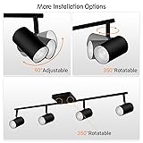 【Black 4-Light Track Lighting】This track lighting fixtures ceiling has standard GU10 bulb socket (Bulb not included), you can choose to install compatible dimmable bulbs and switches to realize a dimmable LED track lighting; We have thickened and lengthened lamp cups of this kitchen track lighting(3.54''x 2.17''), which improves the overall fit of the ceiling spot lighting with your space, and can better match your room; Made of high quality metal, corrosion resistant and easy to clean. 【Installation Versatility】Mounted on the ceiling, it provides specific or overall area lighting, you can hit the light on crafts or back walls, can also be used as kitchen lighting fixtures ceiling or track lighting for dining room; This modern track lighting also can be used as a light for room wall, you can mount it on the wall above your bed or on your desk; Ceiling spotlight can reduce the reflection and dissipation of light and improve the efficiency of light utilization, thus saving energy 【Modern Fashion Style】: The matte black design, High-end minimalism and modern industrial in one, make the track lighting fixtures can easily complement any interior decoration style, making it suitable for your restaurant, bedroom, living room, wardrobe, hallway, foyer, bar, or exhibition hall,adding a touch of modern and fashionable charm; Whether this track lighting kit is to accentuate the atmosphere of the home or highlight the taste of the business place, this spotlight is a good choice. 【Design details】: The lamp heads and arms of this ceiling mount track lighting can rotate 350°to create unique and varied light effects, adding a sense of art and atmosphere for the space; The 4 way track lighting fixtures ceiling with elongated lamp cup can avoid direct light, to protect your eyes; The classic square canopy design, adjusted in different directions during installation, can bring a different decorative feeling to this kitchen track lighting fixtures ceiling. 【Worry-free Purchase】:This ceiling track light fixture is made of high-quality materials with advanced and stable circuit design, which can work stably for a long time and save the maintenance cost; The package of the flexible track lighting includes all the installation components and detailed instructions that need to be used, you just need to follow the instructions step by step; We provide one-year of quality after-sales service, ready to solve your problems!