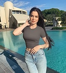 Material - This short sleeve ruched shirt is made of 90% nylon,10% spandex. Llight weight, super soft and high-stretch fabric with a second-skin feel. Design - Going out tops for women.sexy shirt, slim fit tops, short sleeve, crew neck, solid color. This tee shirt is the must-have item in wardrobe. Matching: Casual comfort crop tops for women, matching with jacket, shorts, jeans, leggings, cargo pants or cardigan.Perfect for daily casual wear. Occassion: Basic t shirts great for women, juniors, teens, girls. streetwear, home, school, office, street, beach, party, club, shopping, dating, holiday, vacations. Package and Size: 2 x Women's short Sleeve Cropped T Shirt. Pleases refer to our size chart to choose the right one.