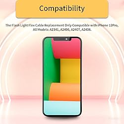 Compatibility: The Flash Light Replacement Only Compatible with iPhone 12pro, All Models: A2341, A2406, A2407, A2408. Fix Problems: Troubleshooting Flash light Issues: The flashlight is dim; the flashlight's light is unstable; the flash light is not functioning; the flash light cable is broken; and other issues related to the flashlight. Easy to Install: Pre -installed metal bracket Holder, easy to assemble in the back cover, You don't need professional technicians to do it. To save you time and money. Improved: After replacement, the flash light function recovers through sufficient flashlight and stable light. The flashlight replacement is made of high -quality elastic cable. Support: If you have any queries regarding the installation of this flash light replacement, please feel free to contact us .