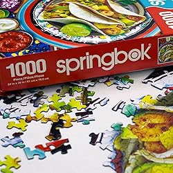 Satisfy your visual and culinary cravings with this delectable taco tray puzzle, brimming with the finest ingredients and a diverse array of toppings to elevate your dining experience. As you assemble this engaging puzzle, your eyes will feast on a colorful palette of spices and toppings, creating a visual fiesta that tantalizes your palate. Unique Cut and Perfectly Fit Pieces: Our precision-cut pieces are never repeated and are thicker than standard, ensuring a seamless fit and a frustration-free puzzle experience. Stunning Artwork: Springbok delivers captivating designs with vibrant colors to elevate your puzzle experience. Choose from challenging images to peaceful, nostalgic prints that can be preserved and displayed with pride upon completion. Eco-Friendly and Premium Quality: Crafted in the USA using 100% recycled board material and non-toxic soy-based inks, Springbok puzzles are both environmentally conscious and built to last for years. Trusted and treasured since 1963. Made in the USA: Proudly manufactured in Kansas City, MO, Springbok puzzles are designed for family fun, offering endless entertainment and great get-together activities.