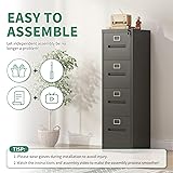 VIYET File Cabinet, 4 Drawers Vertical File Cabinets with Lock for Home Office,Heavy Duty Office Steel Filing Cabinet for Hanging Letters/Legal/A4, Assembly Required,Black
