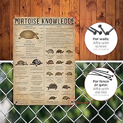 - Discover the perfect blend of education and style with our "Tortoise Knowledge Metal Tin Sign." Measuring 12x16 inches, this vintage aluminum sign is more than just a piece of home decor. It's an educational journey into the world of tortoises, making it an ideal addition to classrooms, kids' rooms, or any tortoise lover's collection. Crafted with durability in mind, the high-quality aluminum material ensures that this sign withstands the test of time, whether displayed indoors or out. Its retro design adds a touch of farmhouse charm to any setting, be it your home, bathroom, or even a zoo club. This sign isn't just for decoration; it's a gateway to learning. Featuring various types of tortoises, it's an excellent tool for kids and adults alike to learn about these fascinating creatures. Its versatility makes it suitable for an array of settings, including aquariums, kitchens, living rooms, classrooms, and porches. Gift this unique sign to a fellow animal lover, a friend passionate about education, or use it to enhance your own decor. It's more than just a tin sign; it's a piece of art that educates and inspires.