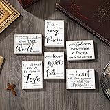 - Features: Ideal housewarming gifts: Rich in quantities and meaningful in design, our wooden signs with sayings can be sent to your friends, colleagues, family members, neighbors and so on, expressing your love and care fully. Convenient to use: The Christian home art has a smooth surface and flat bottom, you can just place it at many places that have flat surfaces as well, easy and convenient. Specifications: Material: MDF with clear printing Color: distressed white color Size: about 3.5 x 2.5 x 0.47 inches/ 8.9 x 6.35 x 1.2 cm Quantity: 6 pieces Package includes: 6 x Religious wooden signs Notes: Manual measurement, please allow slight errors on size. The color may exist a slight difference due to different screen displays.