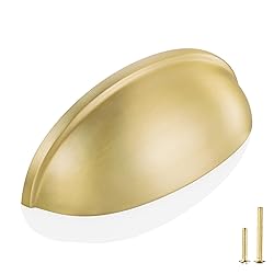 Cup Moon Style – These Cabinet Cup Pulls feature a sleek and modern Cup design, making them suitable for various cabinet styles. Whether it's your kitchen, bathroom, living room, or dresser, it will add a touch of elegance and sophistication to your furniture. Durable Material - Made of high-quality solid brass with a brushed finish, these Cabinet Pulls are heavy-duty and durable, ensuring long-lasting use. Each pull weighs 1.9-ounce(55g), providing a solid and substantial feel. Perfect Dimensions - With a hole center of 3-Inch(76mm), overall length of 3-3/5-Inch(92mm), these pulls are designed to fit most cabinets and drawers. Two Screw Options - Each pack includes 1-inch and 1-1/2-inch screws, allowing you to easily install the pulls on cabinets and drawers with a thickness ranging from 11/16 to 1-3/8 inches. For cabinets with different widths, you may need to purchase screws of additional length. The machine screw metric size is 8-32. Hole spacing measurement- Distance from center hole to center hole. Please measure the center-to-center distance of your pull or cabinet holes as shown and pick the correct size.