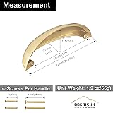QOGRISUN 10-Pack Solid Brass Cabinet Bin Pulls,Gold Cup Drawer Dresser Handles,3-Inch Hole Center, 3-3/5-Inch Overall Length,Kitchen Cupboard Konbs Hardware, Brushed Brass Finish