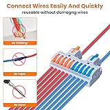【Easy to Use】patented design, different from ordinary rail connectors, does not require cumbersome tightening screws;Simply insert the rail terminal into the 35mm iron aluminum DIN rail, lift the colored handle, insert the wire into the hole until resistance is felt, then drop the colored handle and finish the operation. 【QUALITY MATERIAL】The wire splicing connector shell is made of nylon PA66, the conductor part is tinned with pure copper and with built-in stainless steel spring buckle anti-aging, 4KV and shock resistance, strong structure firmly locked to DIN rail.and because they can be reused, the wires can be disassembled or reconnected for multiple times. 【Product feature】: UOHGDPY The plug and play wiring connector is easy to use, no need for tape or soldering, can connect multiple sets of wires conveniently and each connector is with M3 screw mounting holes The wire connectors support a variety of installation methods (guide rail and screw mount). Make the connection easier faster and lower maintenance cost. 【Widely applicable】: UOHGDPY lever wire connectors It is widely used in distribution boxes, control cabinets, switchgear, complete sets of equipment, home appliance, lighting, electrical control, power supply, switches, machinery and other wire connection parts. Every junction independent shrapnel, different wire managed separately, improving safety performance. 【PRODUCT SPECIFICATION】 This screw terminal block connector rated voltage is 600V, rated current is 32A, applicable for 0.08-4.0mm²/28-12AWG hard wire or 0.08-2.5mm²/28-14AWG soft wire, it can work continuously between -40℃and 105℃