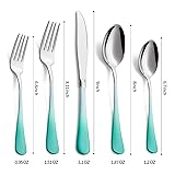 【Vibrant Colors】: Elevate your dining experience with this 20-piece stainless steel flatware set featuring eye-catching colored handles. 【Durable Construction】: Crafted from high-quality 18/0 stainless steel, this cutlery set ensures long-lasting durability and resistance to corrosion. 【Versatile Set】: Includes 4 dinner forks, 4 dinner knives, and 4 dinner spoons,4 smaller forks suitable for salad and dessert,4 teaspoons perfect for everyday home use and casual dining occasions. 【Comfortable Grip】: The ergonomically designed handles provide a secure and comfortable grip, ensuring a pleasant dining experience. 【Easy Care】: These utensils are dishwasher-safe, making cleanup a breeze and maintaining their vibrant colors for years to come.