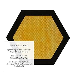 Easy to install using included hardware, our sound dampening panels flush mount seamlessly to any wall. Panels can be mounted in patterns using the hexagon shape, or as standalone noise barriers Acoustic hexagon tile panels offer a frameless, lightweight construction featuring a 6-7 pound density fiberglass core that is extremely effective at absorbing sound Class 1 or Class A Fire Rated per ATSM E84. Professional fire rated materials for recording booths, professional music listening rooms, small rooms, nurseries, and more Noise Reduction Coefficient of 0.8 out of 1 means exceptional sound absorption and the need for fewer panels Panels wrapped in Guilford of Maine SONA line acoustical fabric, the industry standard in sound absorbing material, with a wide color variety to match any decor or wall art Manufactured in the USA