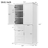 Merax Wide Storage Cabinet with 3 Drawers and Doors, Tall Bathroom Organizer, Pantry Cupboard for Kitchen or Living Room, Adjustable Shelves, White