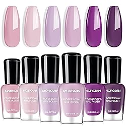 Morovan Nail polish set: Selected fashion Purple Nude Pink Colors Self-leveling Air Dry Nail Polish Set have unique formula, harmless and no U V lamp needed, full and natural-looking, brings smooth application. Morovan personalized Light purple nail polish can perfectly show off your temperament and charm in the simplest way, adding color to your fashion! Unique Color Scheme & application: 0.25oz Pure & Glossy nail polish kit have high capacity than others on the market, allowing for more nail polish matching ideas. You can use it as toenail polish, finger nail polish, with glitter color regular nail polish or on its own to create a different style.(Perfect Gift: Lavender nail polish set for women, girls, nail polish lovers.) ECO-Friendly & Quick Self-Leveling: Fast drying nail polish bulk uses non-hazardous formula that lasts but doesn't damage nails. Safer and Healthier.Nail polish non gel, without lamp baking needed. Simple operation at home can also do DIY your nails, realize your inspiration. Beginner Friendly: Morovan lilac nail polish pack exclusive easy glide brush fits every nail size and allows for quick, streak-free, even and professional application at home. Flawless nail color coverage and durability with every brush stroke. Best Service: We promise to provide all our customers with excellent Nail polish set and services. If there are any problems with this Fingernail Polish Set, please does not hesitate to contact us and we will try our best to help you solve the problem. Replacement or Refund Service is always available. Thank you and enjoy your beauty journey.