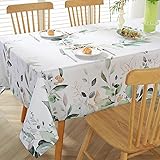 - Eucalyptus Tablecloth for Rectangle Table Floral Watercolor Pattern Table Clot, Waterproof Wrinkle Free Washable Polyester Fabric Table Cover for Spring, Summer, Home Dining, Party, Picnic, Wedding, Indoor, Outdoor Used, Green Color Material: 100% Polyester. Tablecloth is made of high quality polyester fabric. Eucalyptus Leaf Design: Spring tablecloth is designed by green eucalyptus leaves print with active watercolor. Tablecloth looks fancy and elegant. Spill Proof & Dust Resistant: Spring tablecloth is spill proof, water resistant. Rectangle tablecloth can keep rectangular tables from dust, stains, scratch and sun rays. Most dining liquids like wine, drink, soups will away from rectangle tables. Easy to Clean:Tablecloth is easy care and machine washable. Wash with cold water. Iron at low settings if required. Tablecloth will not fade and anti shrink after water wash. Exquisite Workmanship: Spring tablecloths are careful and fine handmade. Every tablecloth edge have extra 1 cm hemed. Size: Tablecloth is available in 4 different sizes: For oblong/ rectangle tables: 52" x 70" (4-6 Seats), 60" x 84" (6-8 Seats), 60" x 102" (8-10 Seats) and 60" x 120" (10-12 Seats). Please refer to the size guide before purchasing.