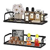 PUSDON Hanging Storage Baskets Organizer Wall Mount, Metal Wire Storage Bin Rack for Kitchen Bathroom Shower Spice Shelf Home Decor Essentials Black-2 Packs (Hollowout)