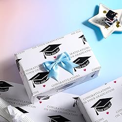 - FOLDED SHEETS: The package includes 6 sheets of flat wrapping paper. Each sheet measures 19.7 inch wide x 27.5 inch long and folded for easy storage. It is suitable for medium and small gifts. GRADUATION DESIGN: Includes 1 design, black trencher cap with "Congratulations on your Graduation" lettering, unique colorful design make your gift attractive. PREMIUM QUALITY: Created with high-quality paper materials, thick and not easily tear or rip. Item came with shrink film to prevent wrapping paper from scratches and reduce dust. USE ALL OCCASION: Make graduation, party, holiday, celebration more special with gifts wrapped. QUALITY CUSTOMER SERVICE: Any question about products or orders, please feel free to contact the customer service, we will try our best to solve the problem.