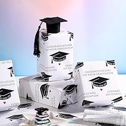 FOLDED SHEETS: The package includes 6 sheets of flat wrapping paper. Each sheet measures 19.7 inch wide x 27.5 inch long and folded for easy storage. It is suitable for medium and small gifts. GRADUATION DESIGN: Includes 1 design, black trencher cap with "Congratulations on your Graduation" lettering, unique colorful design make your gift attractive. PREMIUM QUALITY: Created with high-quality paper materials, thick and not easily tear or rip. Item came with shrink film to prevent wrapping paper from scratches and reduce dust. USE ALL OCCASION: Make graduation, party, holiday, celebration more special with gifts wrapped. QUALITY CUSTOMER SERVICE: Any question about products or orders, please feel free to contact the customer service, we will try our best to solve the problem.
