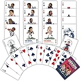 NFL TEAM DESIGN - Show your team pride with these Patriots playing cards featuring official NFL logo cards and custom team graphics on every face card and joker for a unique game experience. STANDARD 54 CARD DECK - Includes fifty-two playing cards and two jokers, perfect for classic card games. Enjoy a football deck of cards that brings excitement to every game night. PERFECT FOR FANS - Ideal for NFL Patriots cards collectors and football enthusiasts. Makes a great gift for kids and adults who love the thrill of the game and supporting their favorite team. DURABLE MATERIALS - Crafted from high-quality cardboard for lasting use. This NFL deck of playing cards is designed for repeated play, making it a must-have for tailgates and parties. GREAT FOR ALL OCCASIONS - Whether at home or on the go, this deck of cards Patriots fans will love is perfect for travel, family gatherings, or Superbowl parties. Suitable for up to six players.