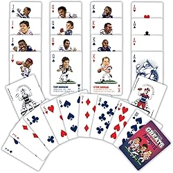 - Show your team spirit with the Masterpieces Officially Licensed NFL New England Patriots Playing Cards, a must-have for any football fan or collector. This premium NFL deck of playing cards features 52 standard cards and 2 jokers, each with vibrant, custom Patriots designs and the official NFL logo on the card backs. Crafted from durable cardboard, these designer playing cards are perfect for game nights, tailgates, or as a unique gift for sports enthusiasts. The unisex, multicolor deck is suitable for kids and adults, making it ideal for family gatherings or parties. Measuring approximately 4.2 x 2.5 x 0.75 inches and weighing just 0.21 pounds, this compact football deck of cards is easy to take on the go. Whether you’re a Patriots supporter or a fan of NFL playing cards in general, this officially licensed set brings excitement to every hand. Enjoy classic card games with a sports twist and celebrate your favorite team with every shuffle and deal.