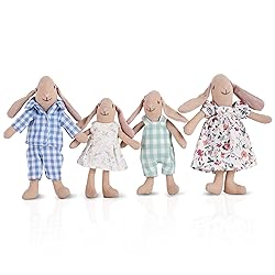 【Bunny Family Set】Bunny dolls include dad, mom, son and daughter. All our Bunny feature delightful detail from nose to tail. Each bunny friend is full of personality. Some are fun, some are cute, some are cool, it's up to you! Different themes bring endless adventures for our little ones 【Natural Handmade Dolls】Bunny dolls are handmade, each plush toy is filled with tender love and care, making them the perfect toy for your special little one. easter basket essentials 【Specially Designed for Small Hands】We carefully designed the Giant bean Easter bunny decorations for ages 3 and up, taking into account the grip size, weight, color outline and shape that best fit your child’s hands. Our brightly colored plush dolls provide visual stimulation to help your little one grow 【Suitable for various scenarios 】These whimsical bunnies also look beautiful as interior decorations. They look amazing sitting in a kid's playroom, bedroom, or even the living room! There are endless options for Giant bean bunnies to keep your imagination entertained 【Great gift for kids! 】This adorable Easter Bunny is sure to delight your child. Perfect as an bunny decor, Easter gift, it makes a charming addition to any Easter basket. It’s also an ideal present for birthdays, Christmas, or any special occasion