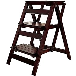 - This versatile ladder stool has a sturdy design and is made from high quality solid wood for a high load bearing capacity. Compared to traditional ladder stools, this ladder stool can add to your interior decor. It can be used not only as a chair but also as a ladder. This ladder and other ladders are manufactured to mechanical standards to suit more styles of homes. It also has the function of a ladder, one thing twice, instantly transformed into a ladder, cleaning, organising wardrobe, fetching things from high places, within reach, making your life more convenient! Chair parameters Style: modern minimalist style Material: pine Design: creative ladder chair, mechanical design Colour: walnut, original wood, black Size: 42*57*65cm Features: foldable design, space-saving, three-layer ladder design, sturdy and durable, non-slip design ---- Our shop only sells chairs, all other items are props. --- Measurement methods are different, may cause a small error of 1-2cm, please understand. --- The photos taken of this item are affected by shooting technology, light, monitor settings and other factors, the actual colour and image may be different, please understand.