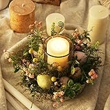 Generic Easter Egg Candlestick, Artificial Plant and Flower Landscaping, Suitable for Coffee Table Center Decoration,Romantic Home Decoration, Religious Candlestick Decoration, Parties, Weddings